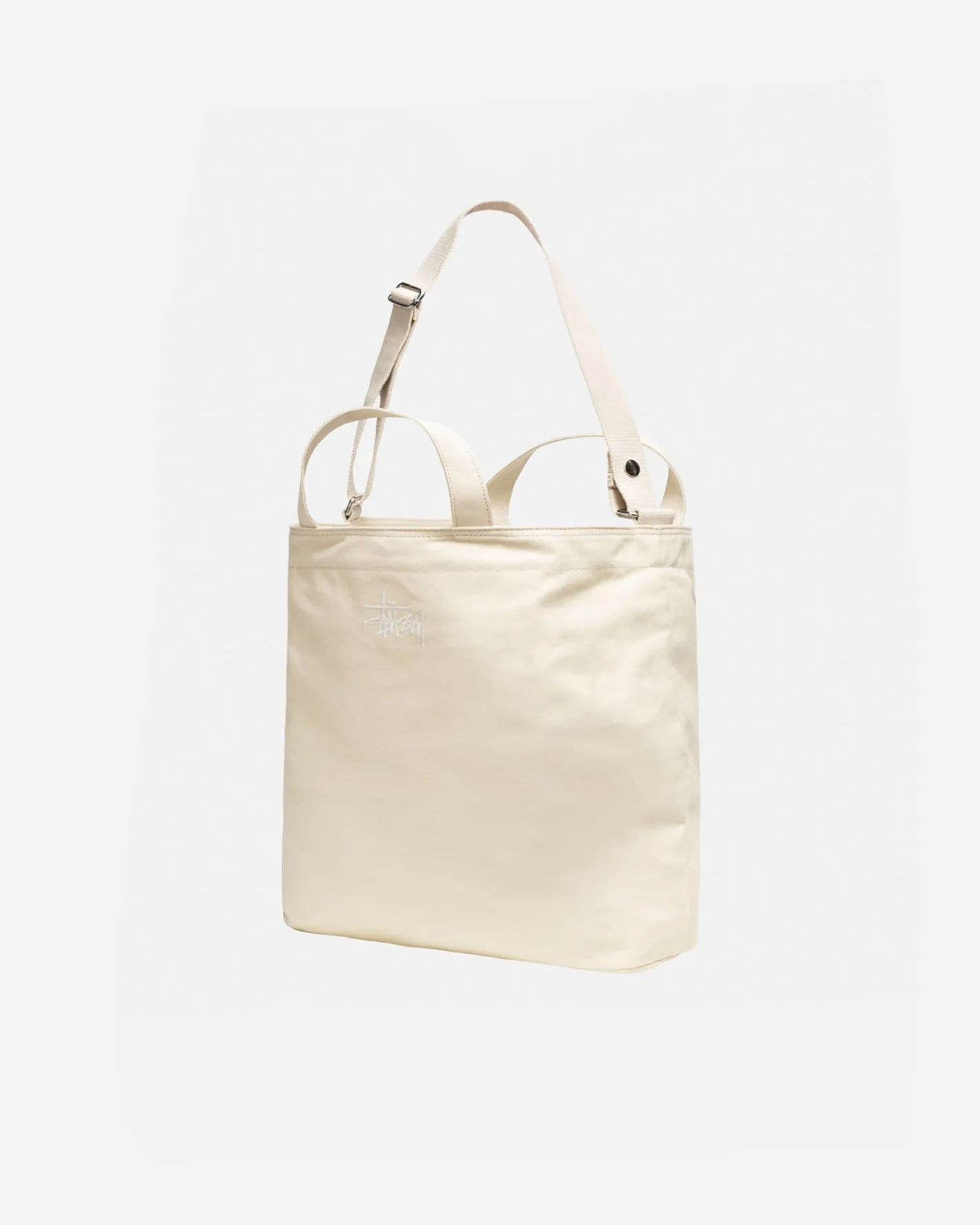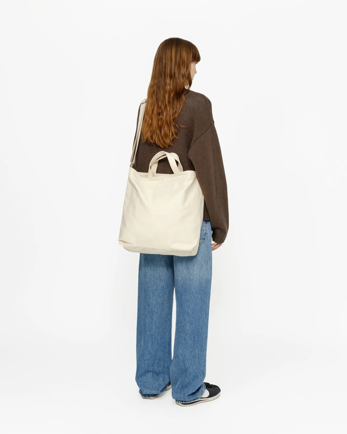 Cotton canvas crossbody bag. Features a hidden snap closure, large interior sleeve and small zipped pocket. Stüssy basic stock logo embroidered at the front side.
