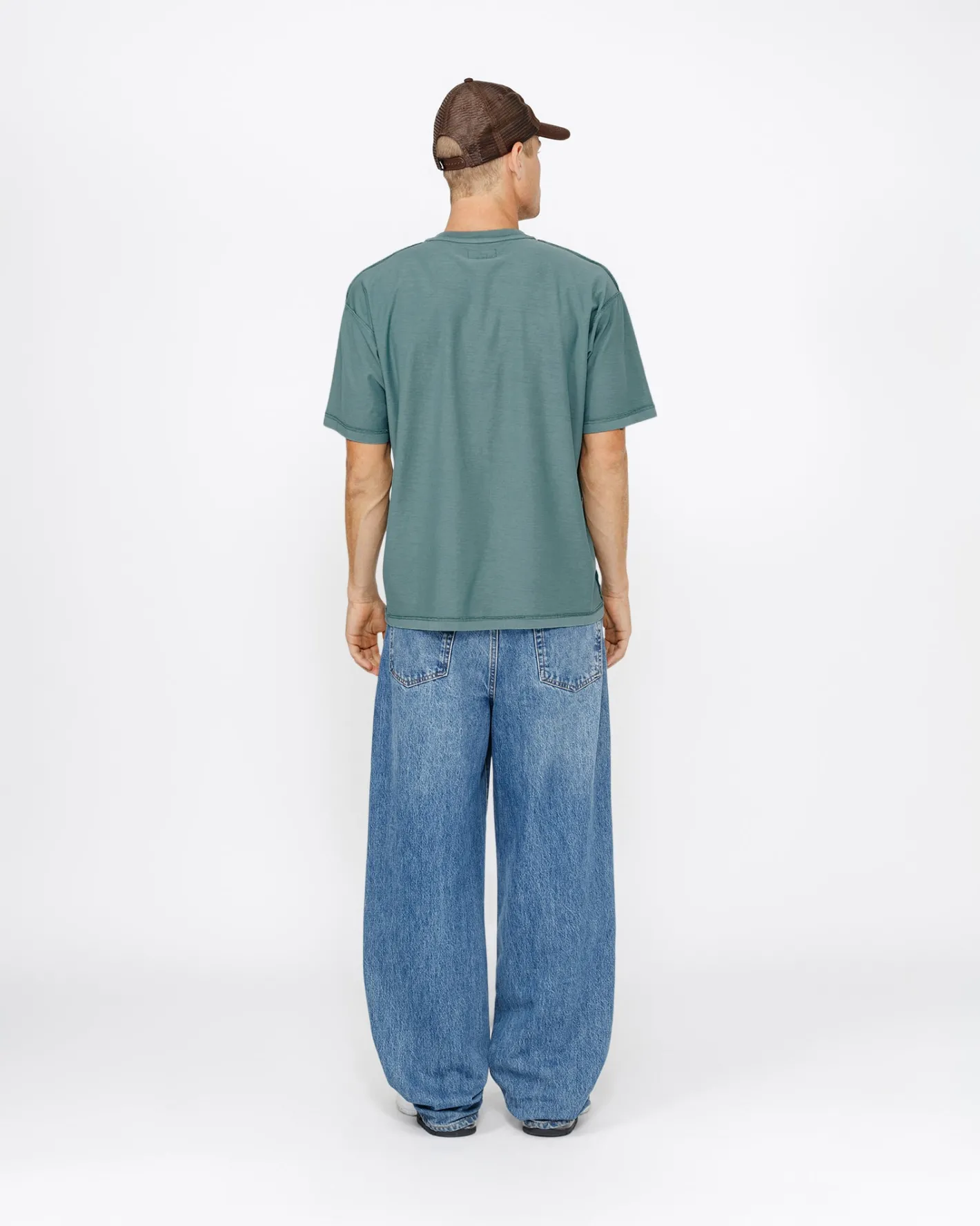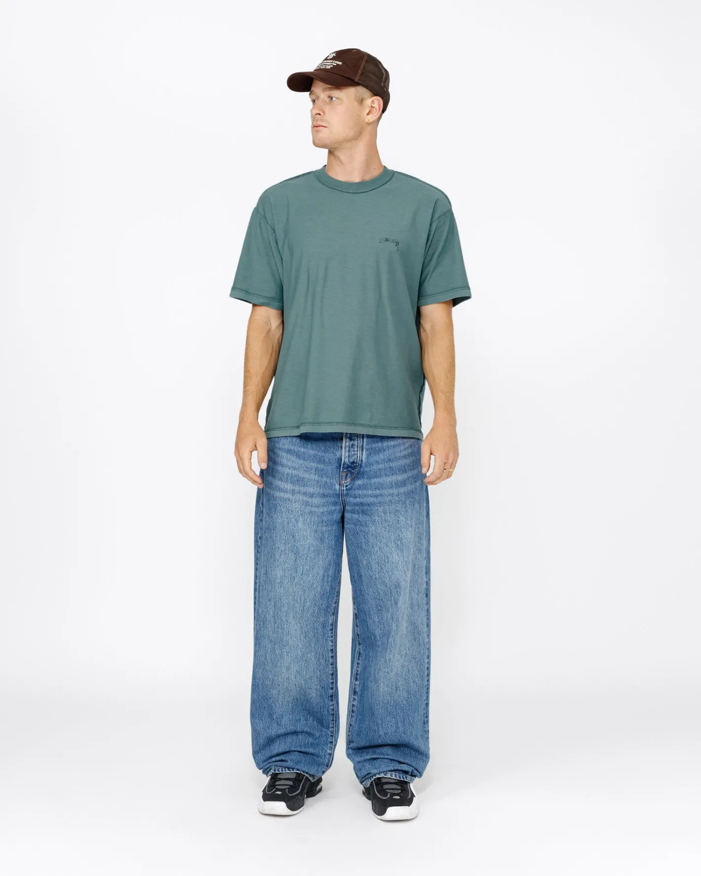 Relaxed fit tee in pigment dyed cotton with inside-out seam detailing. Stüssy smooth stock logo printed at the left che…