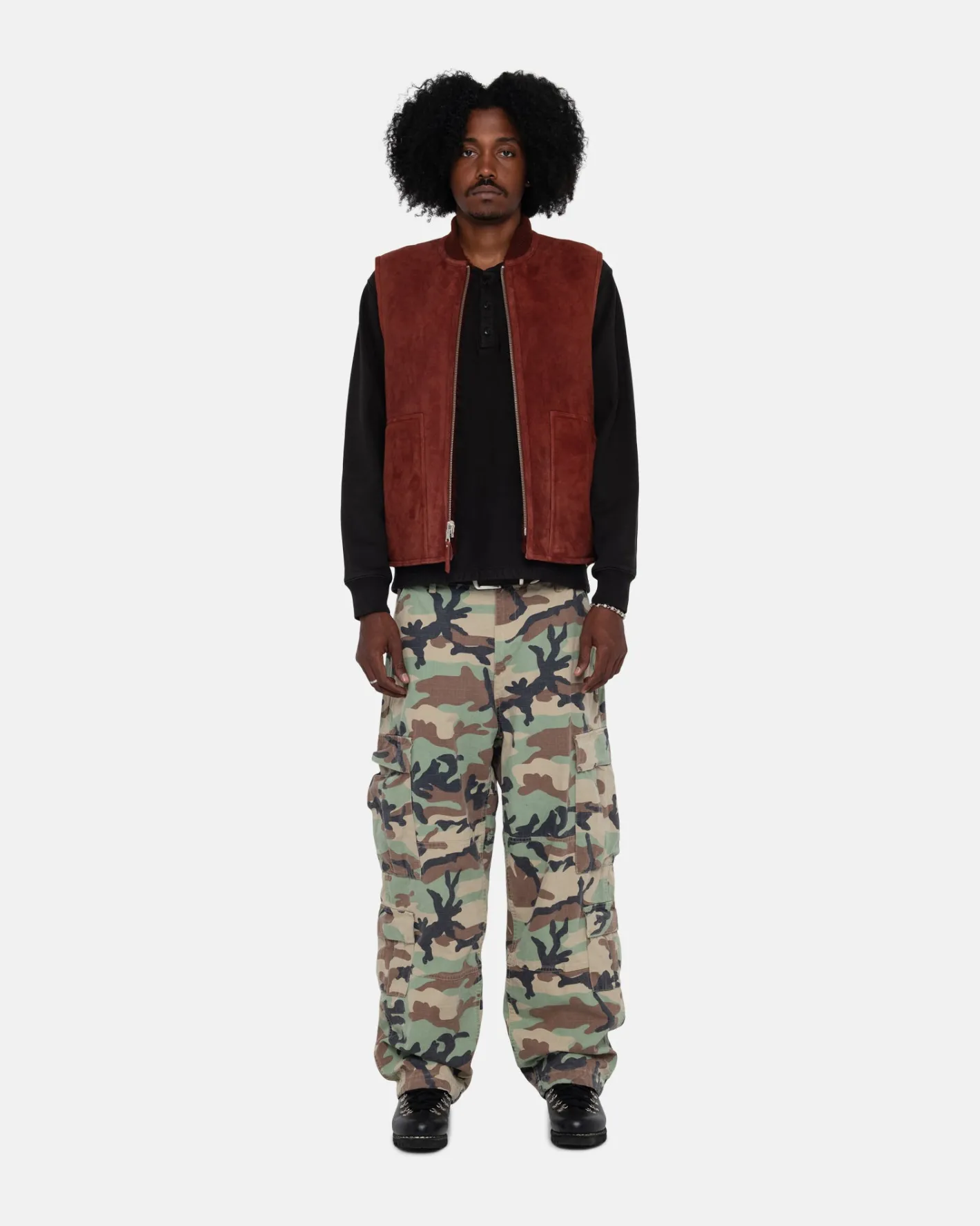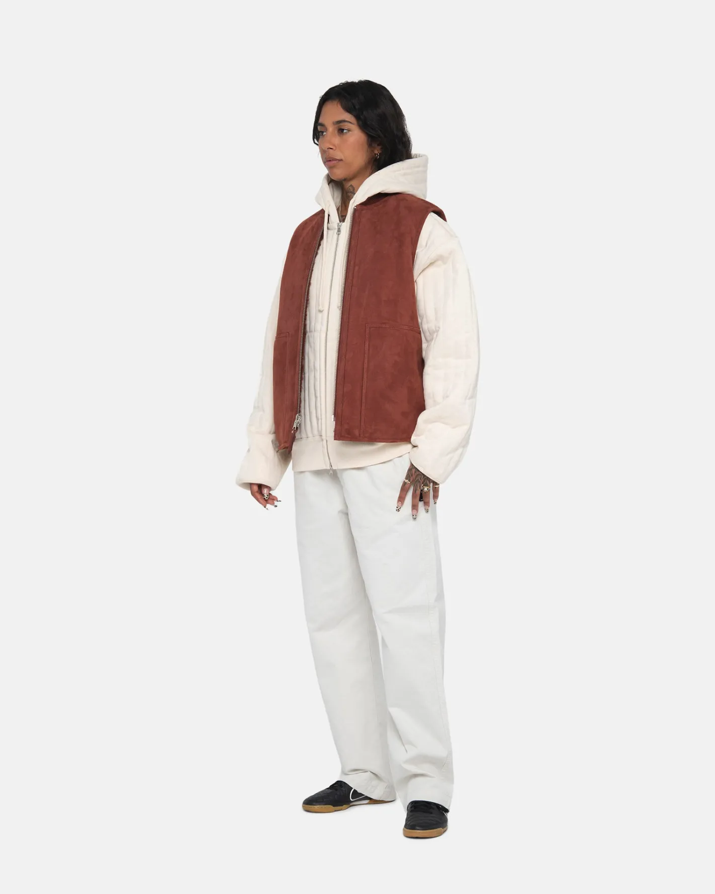 Reversible suede and shearling work vest.